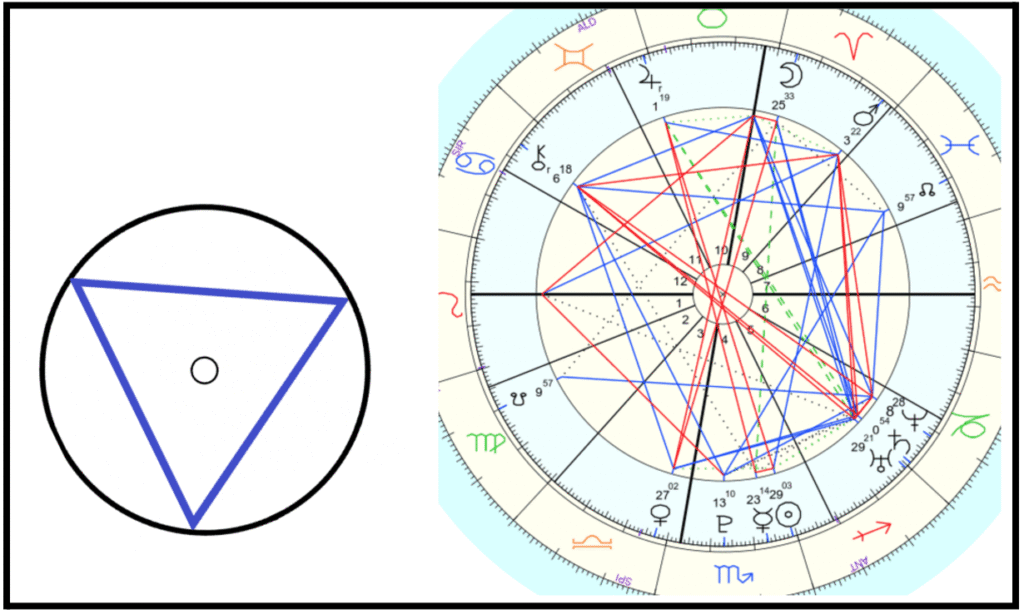 Turen som egenskap kan alltså ses i ett horoskop. Den är relativt lätt att känna igen och ser ut som en liksidig, blå triangel. Den kan ligga åt vilket håll som helst, har alltid minst en spets under det reflektiva medvetandets horisont (AC/DC) och har nästan alltid alla spetsar i samma element (av de fyra aristoteliska elementen) och i Erikas fall är detta element kvaliteten Vatten.