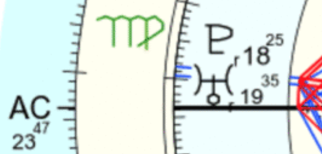 If we take a closer look att his Grand Cross – the red square so dominant in the chart – we find that it links his intellect in his safe space to his inquisitive and somewhat ruthless persona; to his visionary vocation and to his existential pain pertaining to the paradox of setting boundaries and allowing inspirations to touch his soul. The links between these four distinct qualities all demand effort, but of course effort accepted builds muscle, so as an adult he may not experience this strain as a strain, as much as a virtue.
